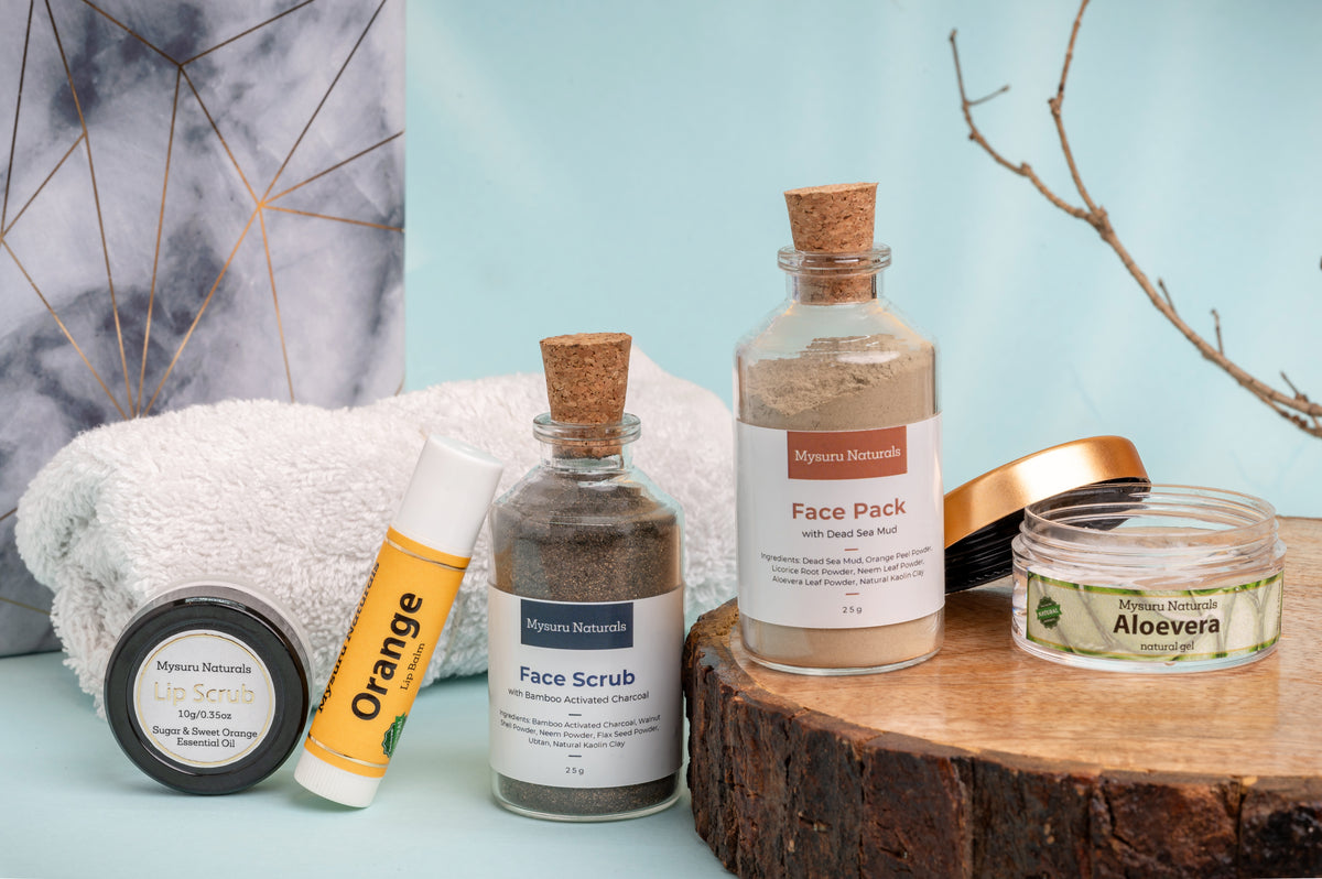 The Vibrance Gift Box offers a complete skincare experience with Aloe Vera Gel, Lip Scrub, Face Scrub, and a purifying Face Pack. Paired with an Orange Lip Balm and a soft Hand Towel, this set is perfect for anyone looking to refresh and rejuvenate their skin naturally.